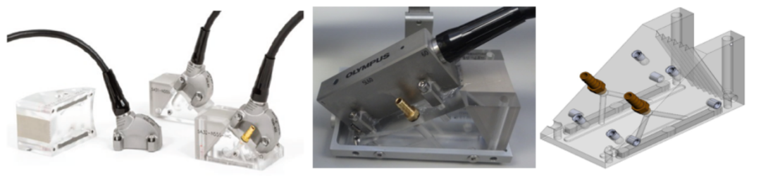 根據不同焊縫厚度,選擇不同類型相控陣探頭,并配有對應的噴水楔塊。