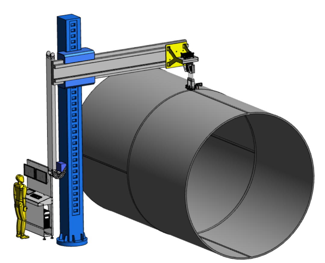 利用升降機構和伸縮機構實現探頭與塔筒焊縫的貼合檢測,檢測人員可以通過控制程序遠程調整探頭位置,并實時觀察檢測結果和保存檢測數據。